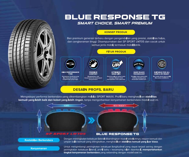 Dunlop resmi meluncurkan ban terbaru di tahun 2026 bernama Blue Response TG. Mengusung filosofi “Smart Choice, Smart Premium,” ban ini hadir sebagai penerus dari tipe sebelumnya, yaitu SP Sport LM705 yang sudah dikenal luas oleh pengguna mobil di Indonesia.